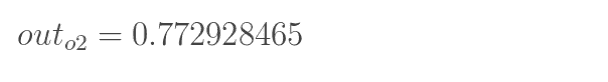 这样前向传播的过程就结束了,我们得到输出值为[0.75136079 , 0.772928465],与实际值[0.01 , 0.99]相差还很远,现在我们对误差进行反向传播,更新权值,重新计算输出。