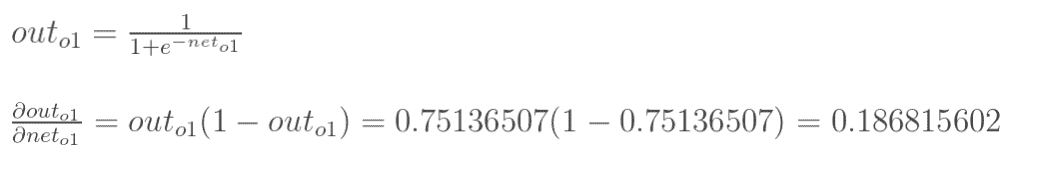 神经元h1的输出o1:(此处用到激活函数为sigmoid函数):
